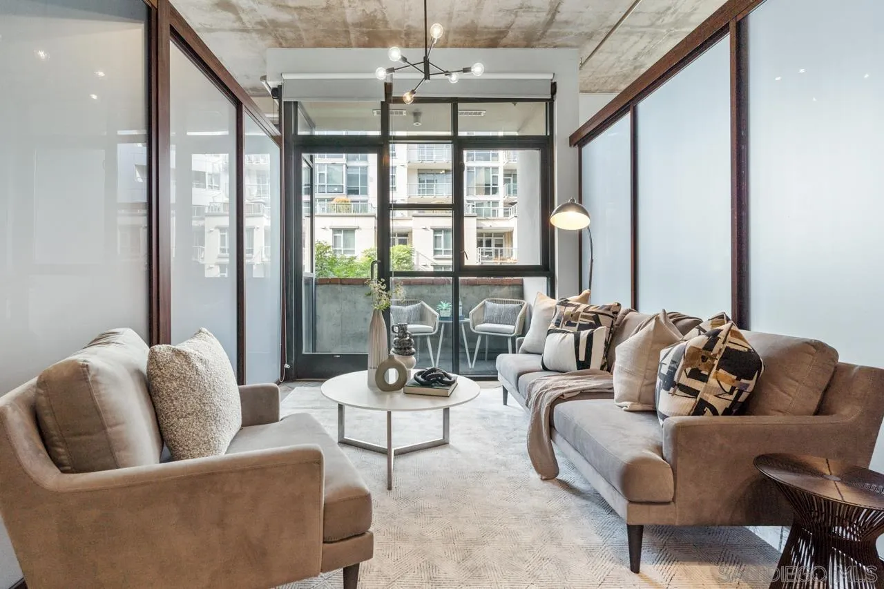 Welcome to Unit 317 in the iconic M2i building, where contemporary design and vibrant downtown living converge. This expansive loft-style condo features 2 bedrooms with partition-style walls and sliding doors, offering both privacy and flexibility. With fresh paint throughout and updates to the kitchen and bathrooms, this home is truly move-in ready. High ceilings and floor-to-ceiling windows flood the space with natural light, highlighting the industrial-chic aesthetic and open layout. Perfect for entertaining or everyday living, this unit combines modern elegance with functional design. Additional amenities include tandem parking on the first level and access to M2i's exceptional features, such as a fully equipped gym, two stylish lobbies, a lush courtyard, and a rooftop patio with west-facing views, a firepit, and BBQs--perfect for enjoying San Diego's year-round sunshine. Don't miss this incredible opportunity to own a stylish home in one of Downtown San Diego's most desirable communities!